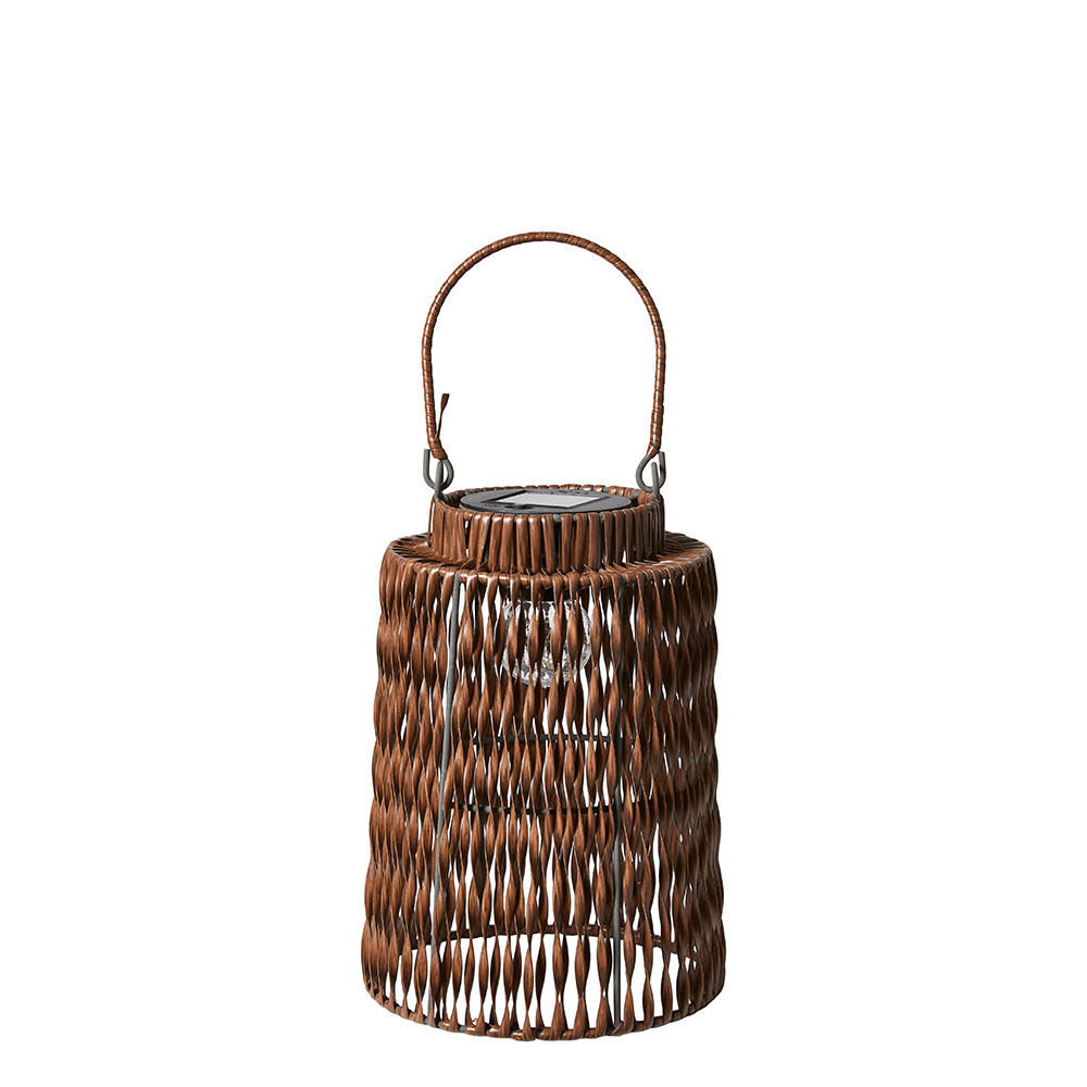 Flettet Solcelle Lampe "Elly" m. Pære - 30,5 cm - Mørk Brun